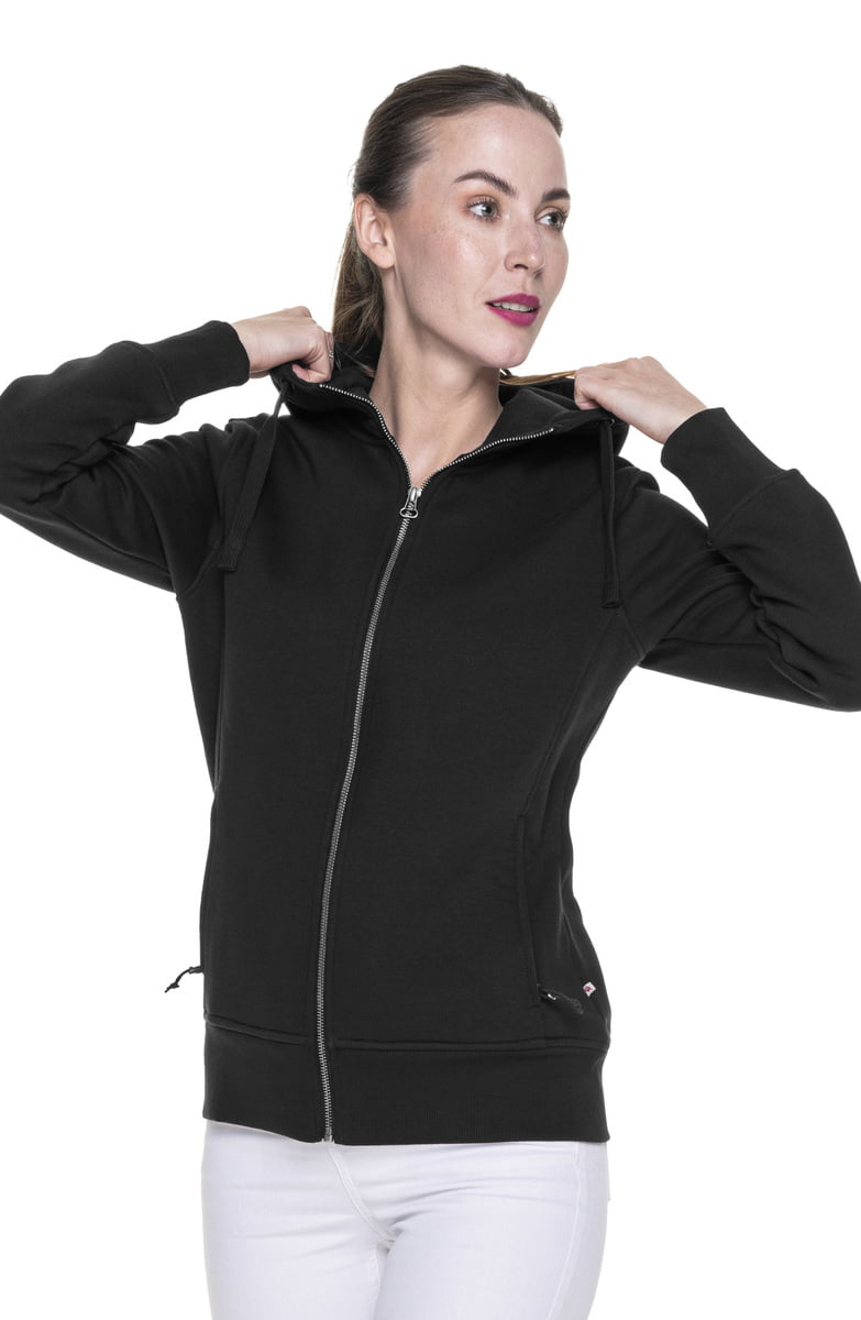 Damska bluza Bison 64003, nowa, ciepła, gruba bluza z kapturem ze stójką, który jest wyścielony materiałem single jersey, regulowany sznurkiem. Zamek główny jest metalowy, a kieszenie posiadają zamek nylonowy. Rękawy oraz dół bluzy zakończone elastycznym ściągaczem. Męski odpowiednik 64000.