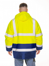 • dwukolorowa ciepła kurtka ostrzegawcza chroniąca przed zimnem i deszczem;