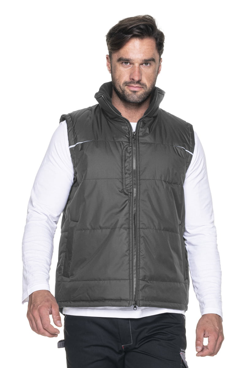 New Road 77625 to pikowana, ciepła kamizelka męska. Posiada ona kołnierz od wewnątrz wyścielony polarem oraz trzy kieszenie, wszystkie zapinane na zamek. Jedna z nich znajduje się wewnątrz bezrękawnika, dzięki czemu jest idealnym schowkiem na dokumenty lub telefon.