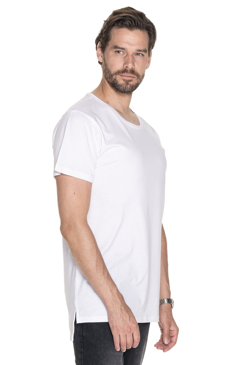 Koszulka Extend 25500 to nowy męski model koszulki z dłuższym tyłem. Luźna koszulka na każdą okazję. Posiada elastyczny ściągacz oraz podwójne szwy. Rozcięcia na bokach wykończone są taśmą wzmacniającą od wewnątrz. Taśma jest również na karku i ramionach. Damski odpowiednik 25503