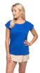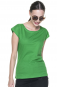 Opis: damska koszulka z miękkiego materiały single jersey typu slub, kołnierz wykończony lamówką, dekoracyjne przeszycia na rękawach