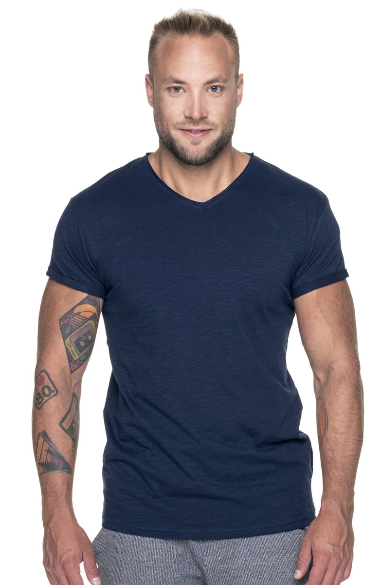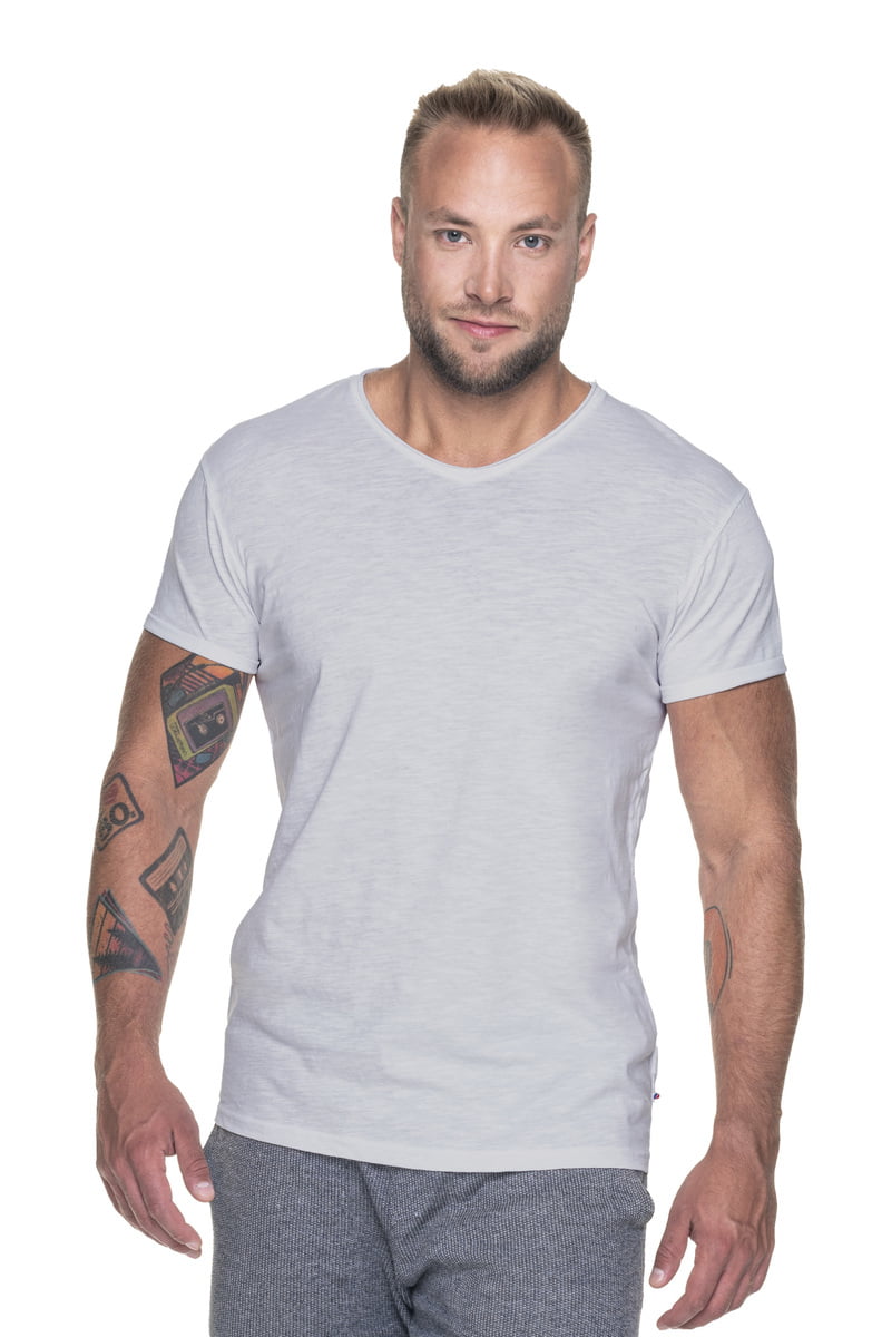 Koszulka Life 21250 wykonana z miękkiego i przyjemnego materiału single jersey. Wykonana z najwyższej jakości bawełny organicznej. Z surowym wykończeniem dekoltu typu V-neck, a także posiada potrójnie wywinięty i przeszyty brzeg rękawka. Damski odpowiednik 21253