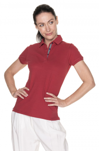 Opis: damskie polo, dzianina typu pique, kołnierzyk ze stójką , ozdobna taśma w listwie z guzikami , 3 guziki,